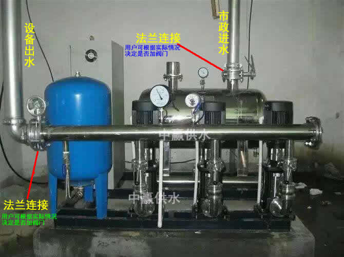 1、本設(shè)備進(jìn)出水口都為法蘭,故市政進(jìn)水管和小區(qū)地下室主管道也都應(yīng)用法蘭,以方便法蘭對法蘭連接。